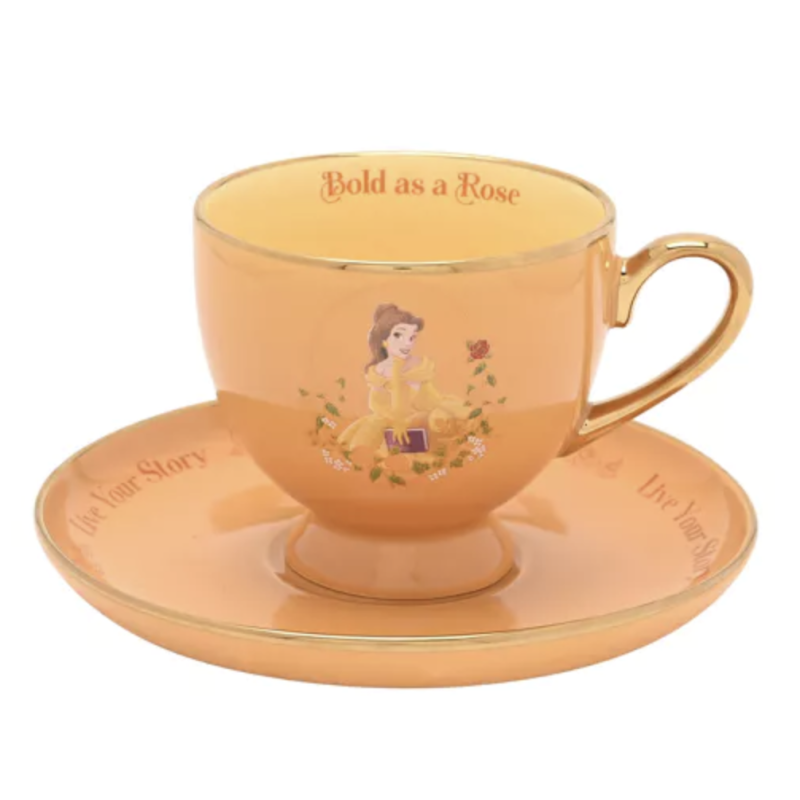 Create a royal tea experience with the Disney Pastel Princess Tea Cup & Saucer - Belle. This golden-coloured set, adorned with an illustration of Belle and the inspiring text "Bold as a Rose", is a treat for any Disney enthusiast. Perfect for any Disney fan, it's not just a teacup, but a keepsake to treasure.