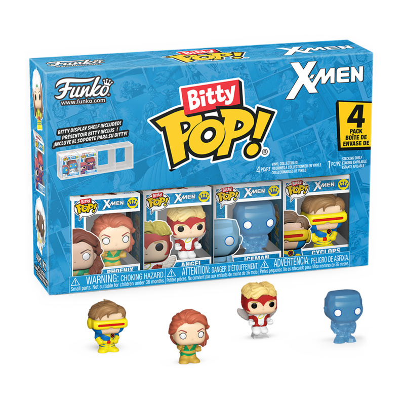 The X-Men Bitty Pop! Vinyl Figure 4-Pack features miniature versions of these four iconic mutants. Each Bitty Pop! captures their signature look in compact detail, making this set a striking addition to any X-Men or Marvel collection.
