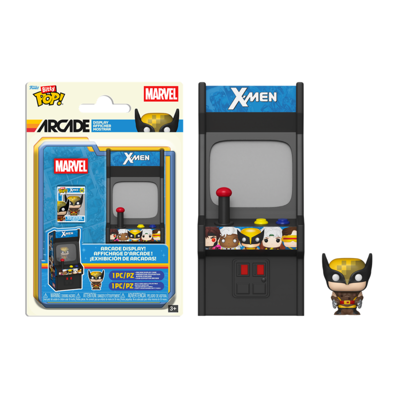 Expand your X-Men collection with Bitty Pop! Arcade Wolverine! Bitty Pop! figure is packaged in a hard acrylic display case with a detachable bottom lid. The detachable bottom lid doubles as an acrylic base, to which the Bitty Pop! figure is adhered.
