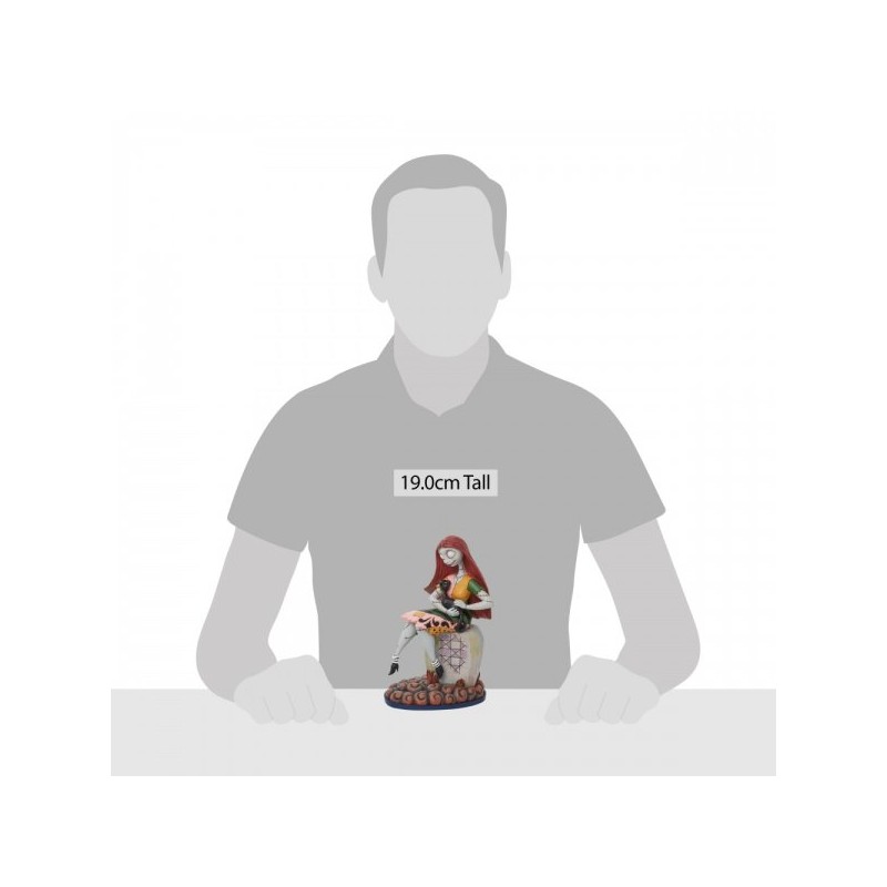 In her patchwork dress, Sally the rag doll sits atop a tombstone with a cat in this inviting piece by Jim Shore. The beloved Nightmare Before Christmas heroine is a vision of independence and compassion. Take home the magic of Disney this season.