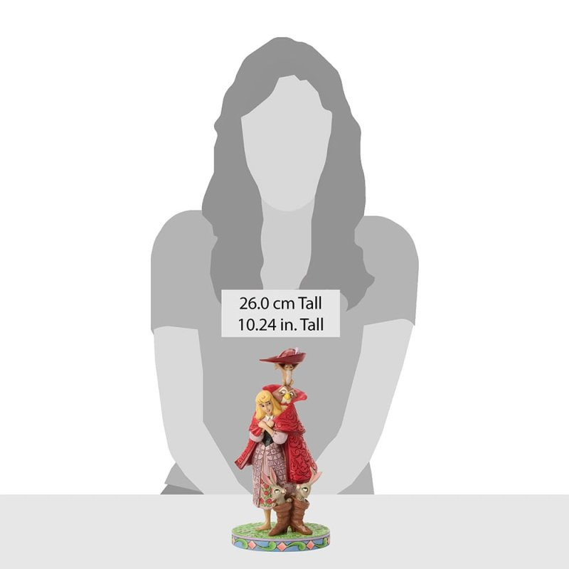 Aurora's forest friends transform into a man in a red coat as she searches for her prince. An owl, squirrel, and bunnies inside boots add charm to this captivating Jim Shore design, bringing the memorable movie scene to life with enchantment.