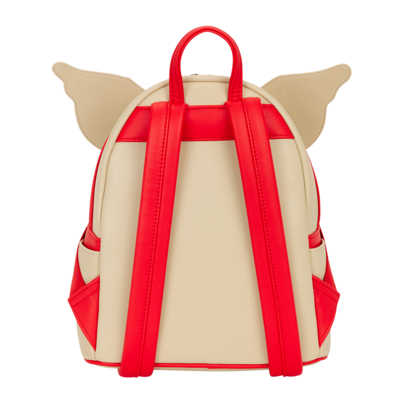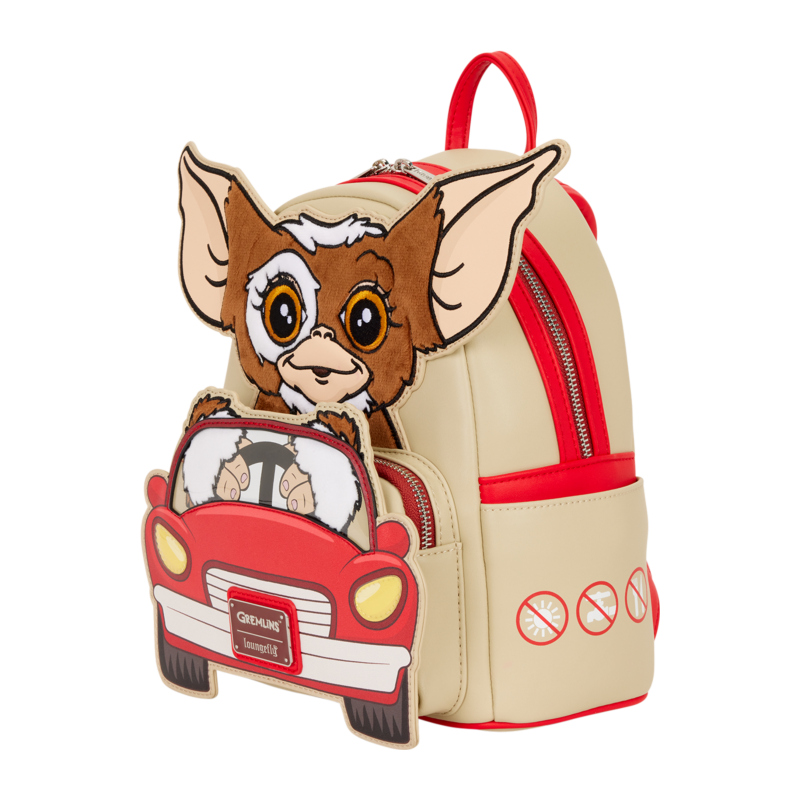 This mini backpack features Gizmo front and center with plush and embroidered details. Gizmo drives a car that doubles as the front pocket – and you know what's really cool? The headlights light up! You'll find "Handle with Care" written on one of the side pockets, and red straps bring the whole look together!
