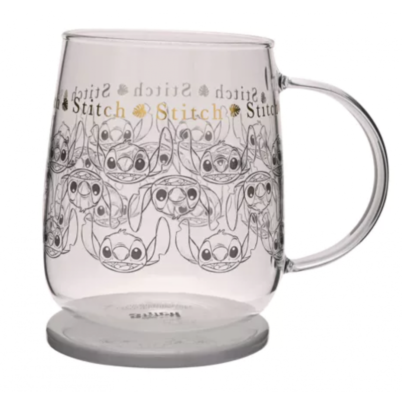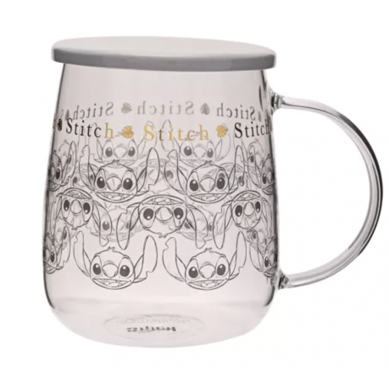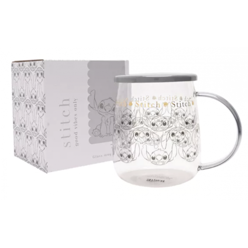 Rediscover the magic of Disney with the Disney Classic Collectable Glass Mug With Lid - Stitch, a playful tribute to the lovable character. This transparent glass mug showcases a fun pattern of cartoon-like Stitch figures against a glass backdrop, topped with a sleek grey lid. Perfect for Disney fans young and old, the mug's design brings a touch of whimsy to your daily beverage ritual.