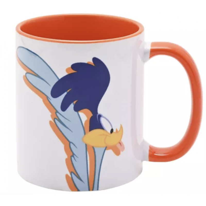 Experience the cheeky charm of the Warner Bros Looney Tunes Road Runner Orange Inside Mug. This 11oz white ceramic mug features a vibrant orange interior, showcasing a whimsical scene of the blue bird, blending fun and nostalgia. Perfect for your daily brew. Explore the full range for a collection that promises to fill your kitchen with laughter and fond memories.