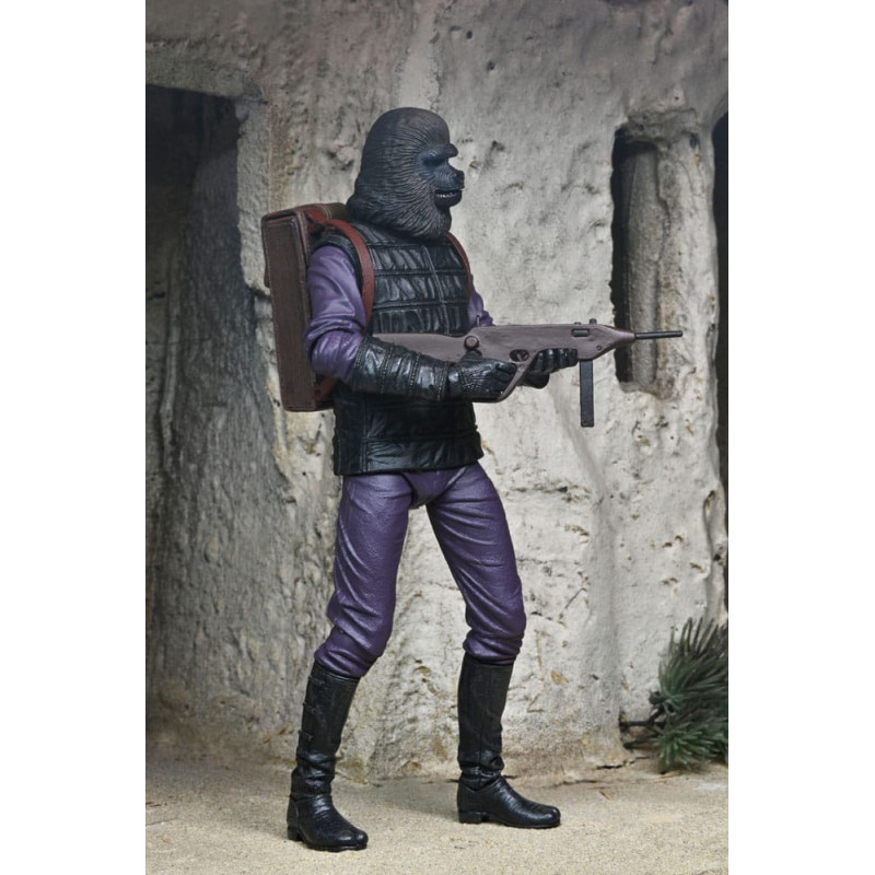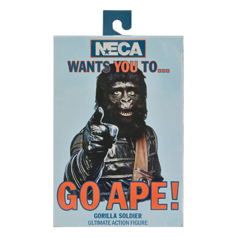 Build your Gorilla Army and defend against wild humans with this Planet of the Apes Ultimate action figure! The Gorilla Solider from the beloved 1968 film is getting NECA's "Ultimate" treatment as a 7-inch scale action figure with an arsenal of accessories: three interchangeable heads, two batons, catching pole, rifle, belt, machine gun, removable backpack, and alternate hand. Comes in collector-friendly, Ultimate five-panel window box packaging.