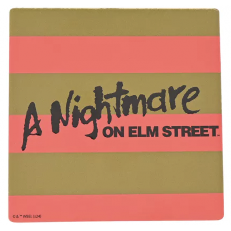 Indulge in horror movie nostalgia with the Warner Bros Nightmare on Elm Street Coaster - Freddy Stripes. Emblazoned with the iconic movie title, this coaster brings a dash of retro chic to a coffee table, making it a perfect addition to any home decor. Use it to rest a cuppa on or simply as a conversation starter - it's a must-have for any fan. Discover the full range of Warner Bros coasters for more cinematic keepsakes.