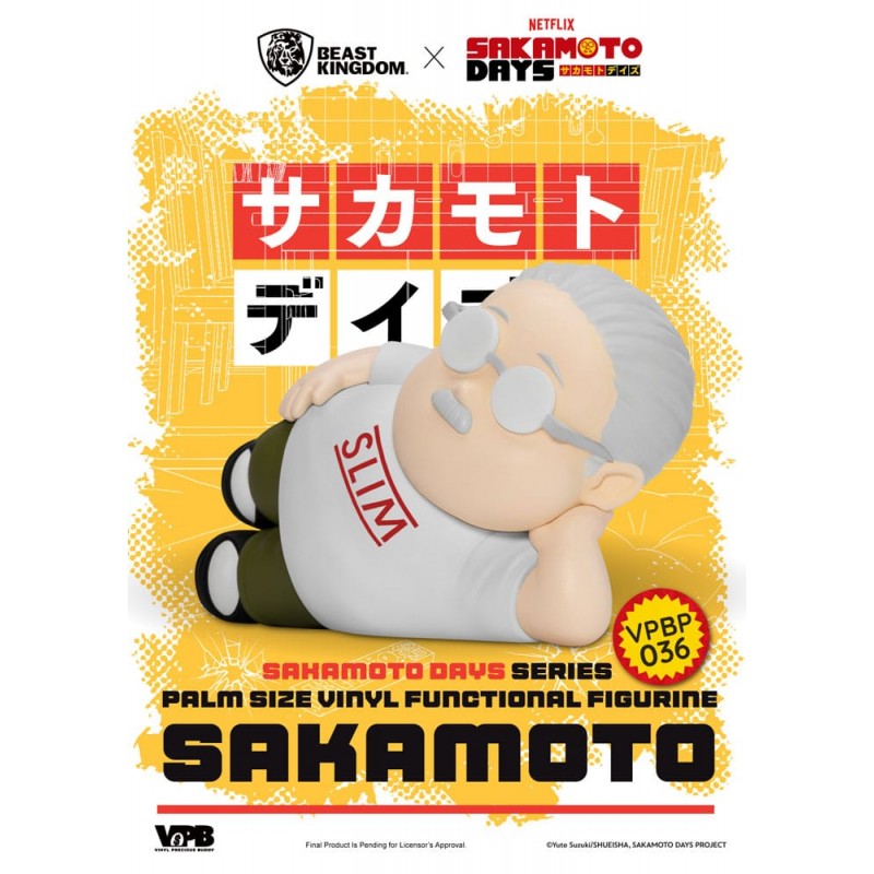 From the smash-hit Japanese manga Sakamoto Days comes the legendary assassin "Taro Sakamoto," now reimagined as a cute, palm-sized vinyl piggy bank! Meticulously crafted by Beast Kingdom's "Vinyl Piggy Bank" series, the figure features a chubby, rounded body and a laid-back reclining pose that's instantly lovable.