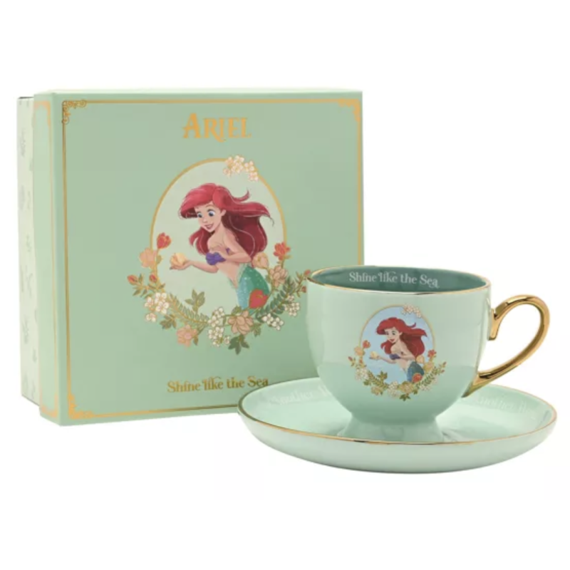 Create a royal tea experience with the Disney Pastel Princess Tea Cup & Saucer - Ariel. This mint green teacup, adorned with a golden rim and a whimsical Ariel design, rests elegantly on a matching saucer. Perfect for any Disney fan, it's not just a teacup, but a keepsake to treasure. Discover the Disney Pastel Princess collection for more delightful pieces that bring a splash of fantasy to your everyday life.