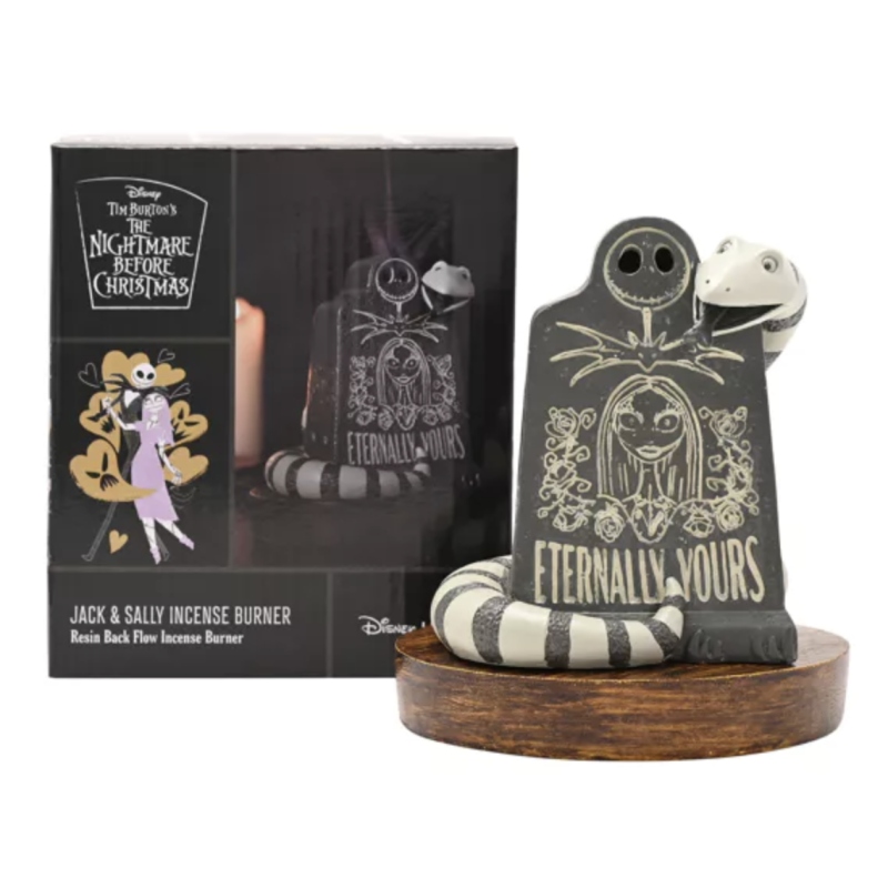 Bring spooky charm to your home with this eerie incense cone holder inspired by Disney's The Nightmare Before Christmas. Perfect for a quirky gothic twist to your décor. • Place a lit incense cone inside the gravestone and the smoke eminates from the skeleton's eyes • A wonderful gift for fans of the movie or anyone who loves the macabre