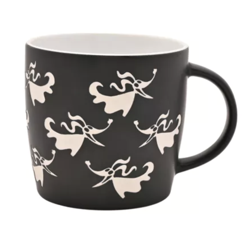 Bring spooky charm to your morning brew with this Disney Nightmare Before Christmas Zero mug. Featuring the lovable ghost dog from Tim Burton's classic film, this black ceramic mug is adorned with a hauntingly beautiful pattern of white floral and leaf-like designs.