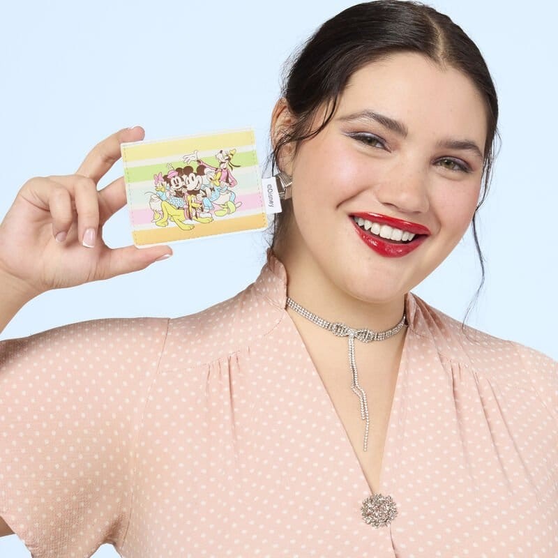 This card holder features Disney's Mickey and Friends on the front. Behind them, covering the entire card holder is a design of pastel rainbow stripes. Turn the card holder around to find three card slots to hold essentials. Spark some joy every time you take this out of your bag!