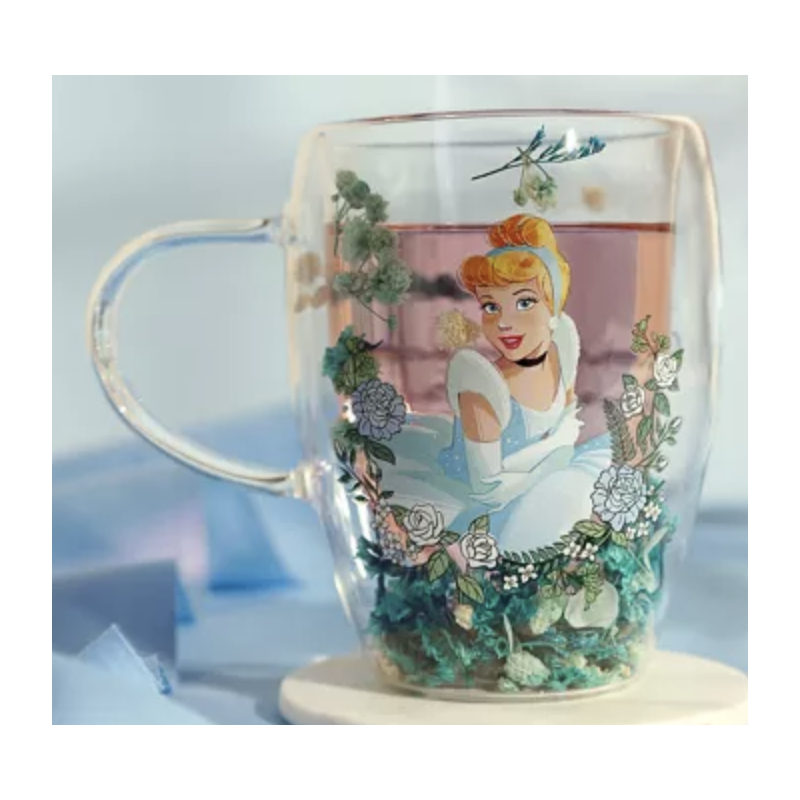 Step into the enchanting world of Disney with the Pastel Princess Glass Mug, adorned with a colourful illustration of Cinderella amidst a cascade of dried flowers. This delightful mug brings a touch of magic to your daily coffee or tea routine. Adorned with a whimsical design, it perfectly captures Cinderella's charm, making it an ideal gift for Disney enthusiasts or a precious addition to any Disney collection.