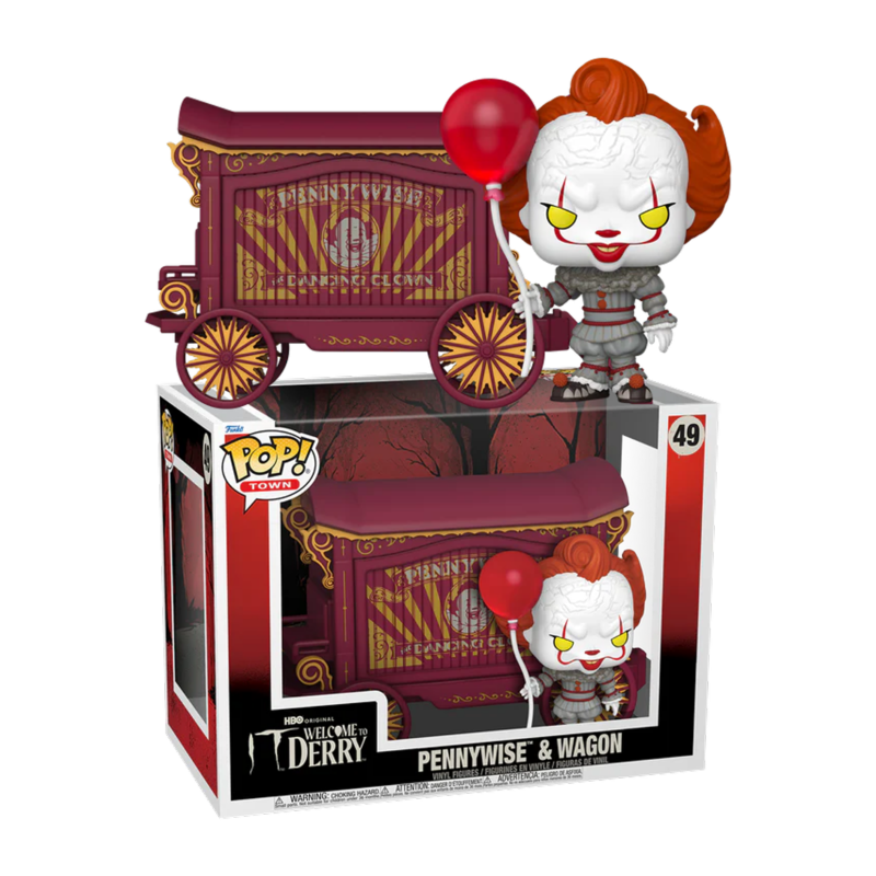 Take a trip to Derry and have a laugh with Pop! Pennywise and Pop! Town Wagon! This clown is sure to terrify your Pop! Television collection when he floats into your It: Welcome to Derry lineup. Vinyl figures are approximately 4.9 and 5.4 in (12.4 and 13.7 cm) tall.