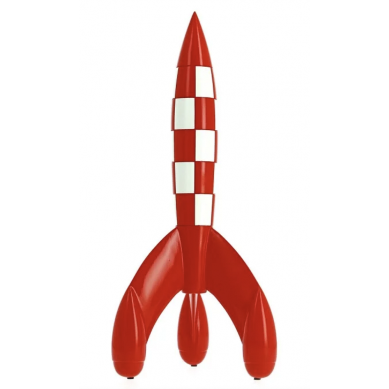 Hergé was intensely curious about science, and the pinnacle of his hyper-realism can be seen in Tintin's Moon adventures. The red-and-white chequered Moon rocket has become an iconic symbol not only of Hergé's work but also of comic strips in general. This new 30 cm resin model Tintin rocket (2018 edition) is based on a drawing from Explorers on the Moon.
