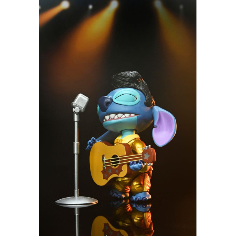 Dressed up in an iconic Elvis outfit, this Disney Stitch articulated figure stands over 3 inches tall and is ready to perform all the hits! Accessories include interchangeable heads, hands, hair pieces, and eye plates, plus guitar and microphone stand. Comes in collector-friendly packaging.