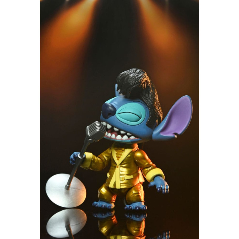 Are you ready to rock? The "Disney Stitch Inspired by Elvis®" collection is the perfect way to celebrate Disney Stitch and show your love for the legendary rock star, Elvis Presley! These officially licensed creations featuring Disney Stitch dressed up in signature Elvis looks are sure to add some rock 'n' roll charm and nostalgia to your collection! Your action figure ohana won't be complete without this Ultimate Gold Suit Elvis figure from NECA.