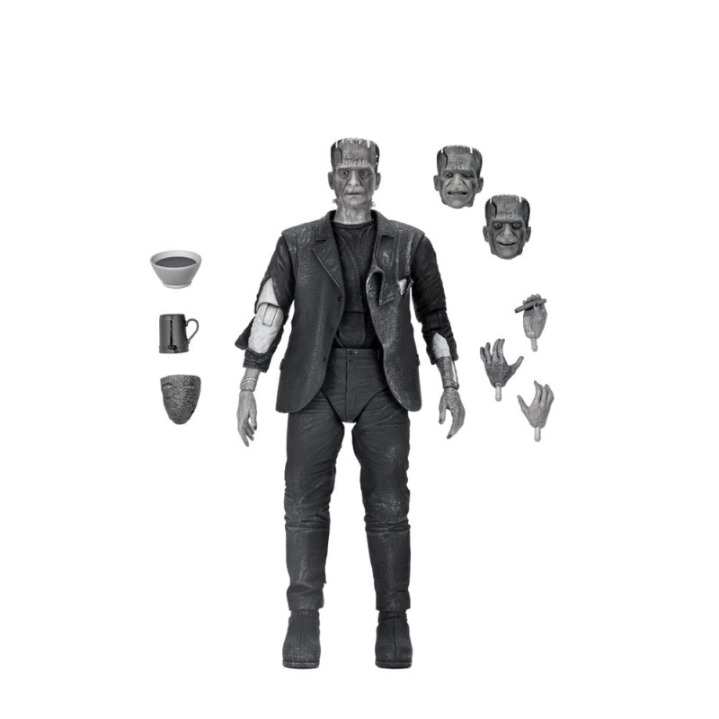 Frankenstein's Monster lives! Recreate iconic scenes from the 1935 sequel The Bride of Frankenstein with this Ultimate action figure from NECA! Appearing as if he lumbered off the silver screen itself, this figure features black-and-white deco and sculpts reflecting Boris Karloff's second appearance as The Monster. Accessories include interchangeable heads and hands, a loaf of bread, mug, and bowl of soup. Looming over 8 inches tall with 28 points of articulation, this figure is ready to join your black-and-white Universal Monsters collection! Comes in display-friendly window box packaging with opening front flap.