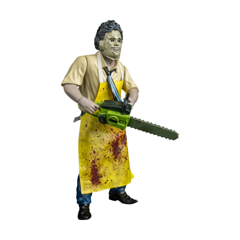The Texas Chainsaw Massacre (1974) - Leatherface (Killing Mask) 5" Scale Action Figure is a detailed collectible representing the iconic horror villain Leatherface from the classic 1974 slasher film The Texas Chainsaw Massacre. This figure features Leatherface in his "Killing Mask," complete with his blood-stained apron and chainsaw, capturing the menacing and grotesque aesthetic from the movie.