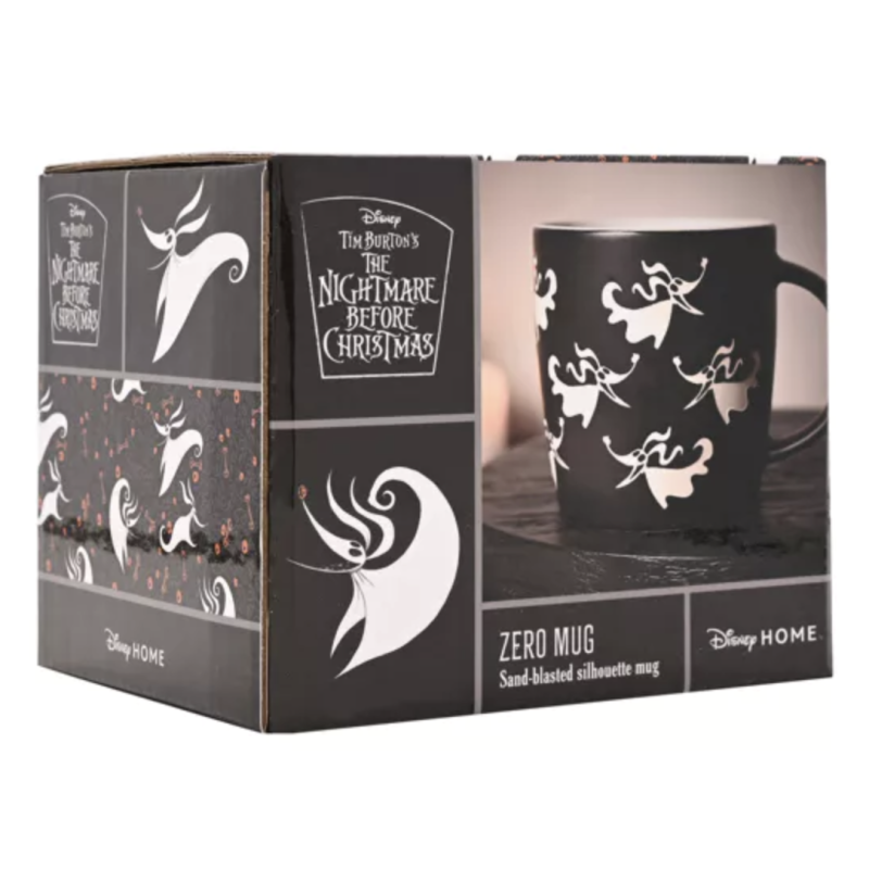 Bring spooky charm to your morning brew with this Disney Nightmare Before Christmas Zero mug. Featuring the lovable ghost dog from Tim Burton's classic film, this black ceramic mug is adorned with a hauntingly beautiful pattern of white floral and leaf-like designs. • Officially licensed Disney Nightmare Before Christmas merchandise • Striking black and white design showcasing Zero, the loyal companion • Perfect gift for fans of the beloved stop-motion animated musical
