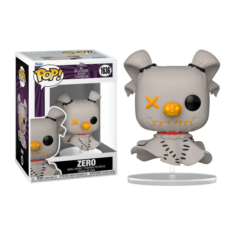 This Pop! Vinyl Figure features Zero in his Patchwork design, complete with vibrant stitched details and whimsical charm. A perfect addition for fans, it brings a cheerful piece of The Nightmare Before Christmas to any collection.