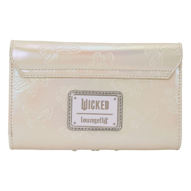 This gorgeous wallet is pearlescent with debossed butterflies and raised tonal embroidery of elegant swirls. On the front, you'll find a large butterfly with an enamel charm that has Glinda's silhouette within it! Open it up to find seven card slots and one clear ID slot. It's the perfect accessory to show off your love for all things Wicked.