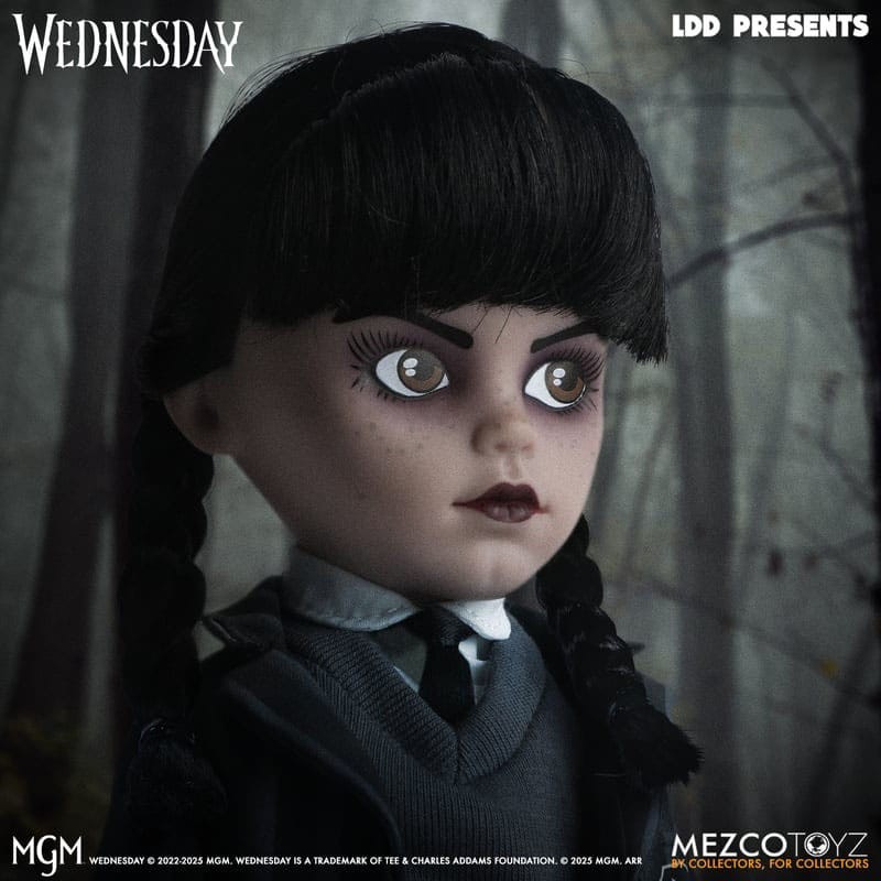 LDD Presents Wednesday - Nevermore Academy Uniform stands 10" tall and features 5 points of articulation. She is packaged in a window box, perfect for display.