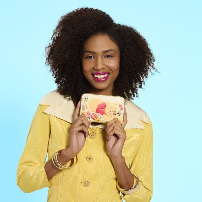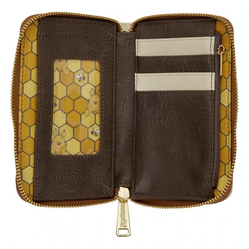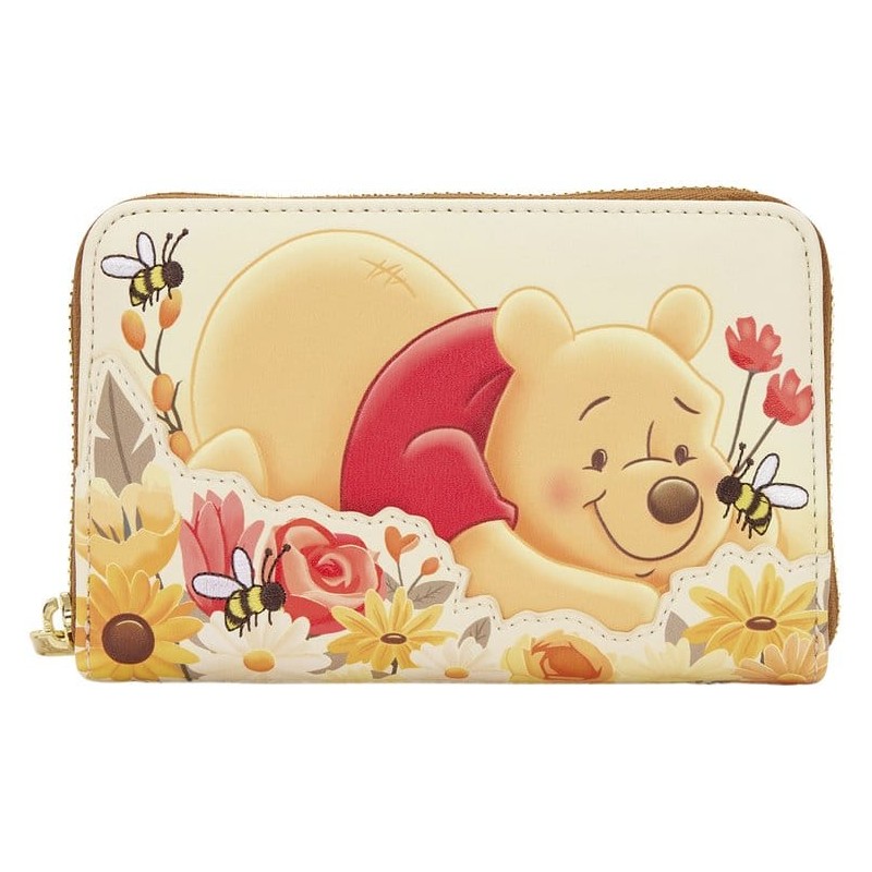 This wallet is inspired by Disney’s Winnie the Pooh! You'll find him laying amongst flowers on the front. More flowers, bees, and a beehive can be found on the back. Inside, there are four card slots and one clear slot for an ID. It's the perfect accessory for any Winnie the Pooh fan!
