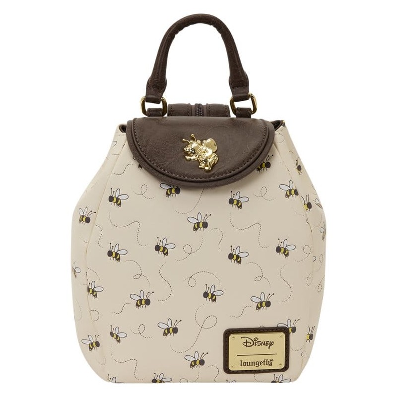 This micro mini backpack is smaller than our traditional mini backpack silhouette. All over, you'll find an embossed pattern of hunny bees buzzing about. The top flap features a 3D molded metal charm of Winnie the Pooh! The bag can convert from a micro mini backpack to a sling by zipping the two halves of the strap together to make it one! Get ready for any sweet adventure with this bag!