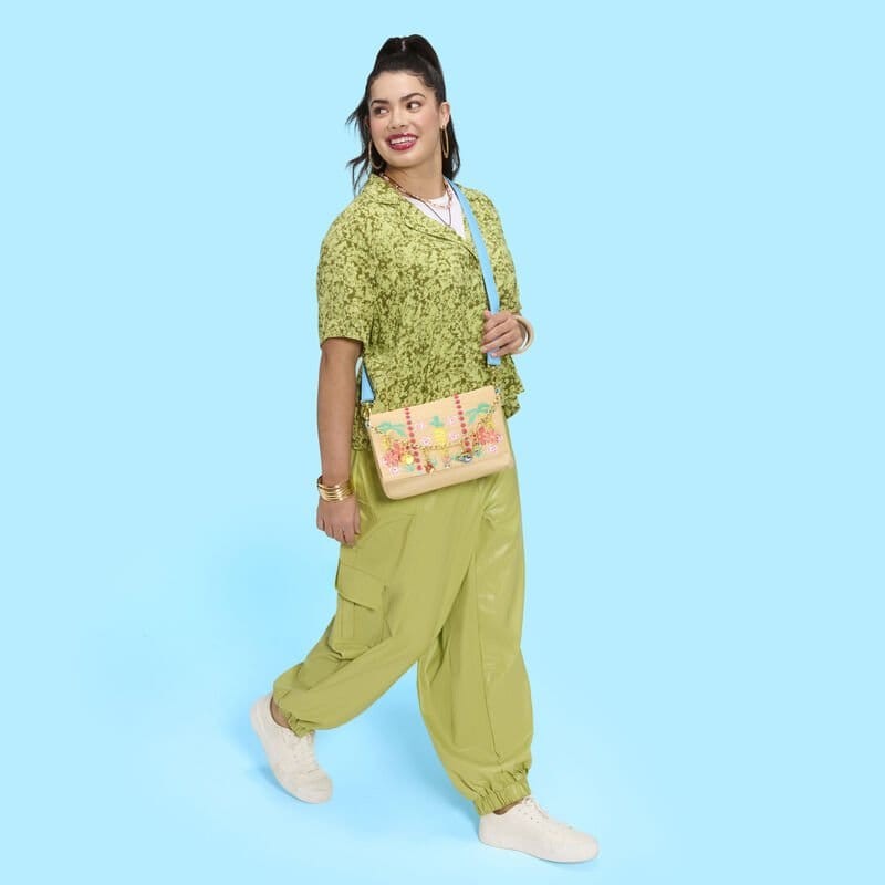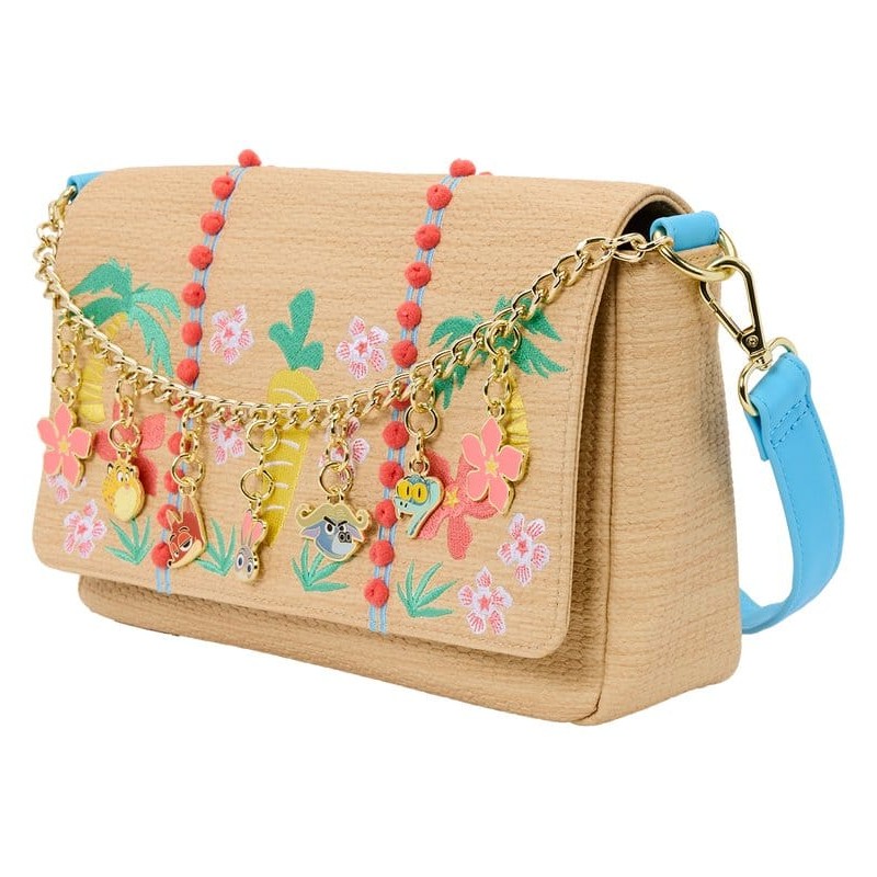This crossbody features a woven texture. On the top flap, you'll find embroidered details of flowers, carrots, and plants. A metal chain drapes across the crossbody, featuring charms of some of your favorite characters! This is a fun statement piece to celebrate one of your favorite movies!